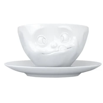 Comprend une tasse et une sous tasse en porcelaine.